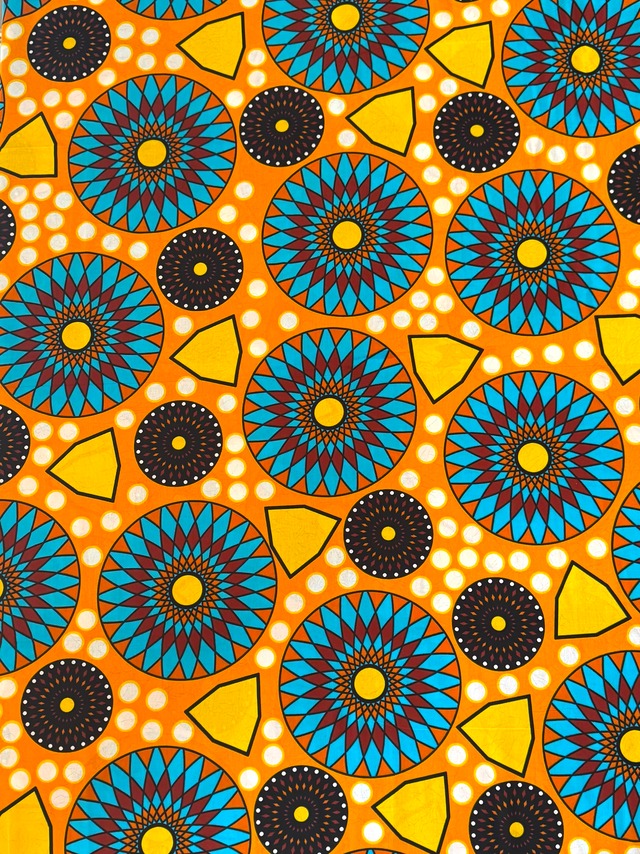 【直輸入】アフリカ布|サークル万華鏡(オレンジ/ターコイズ)|VLISCO|2ヤード|AF-VLISCO-OB