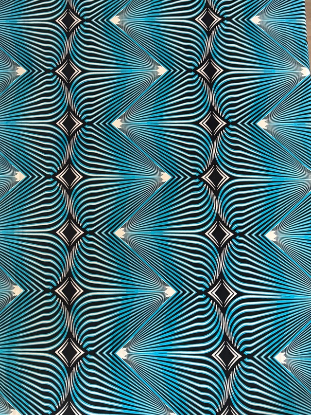【直輸入】アフリカ布|流線型モダン(ターコイズ/ブラック)|BLACK PRINCE Golden Java|2ヤード|AF-BKPRC-B
