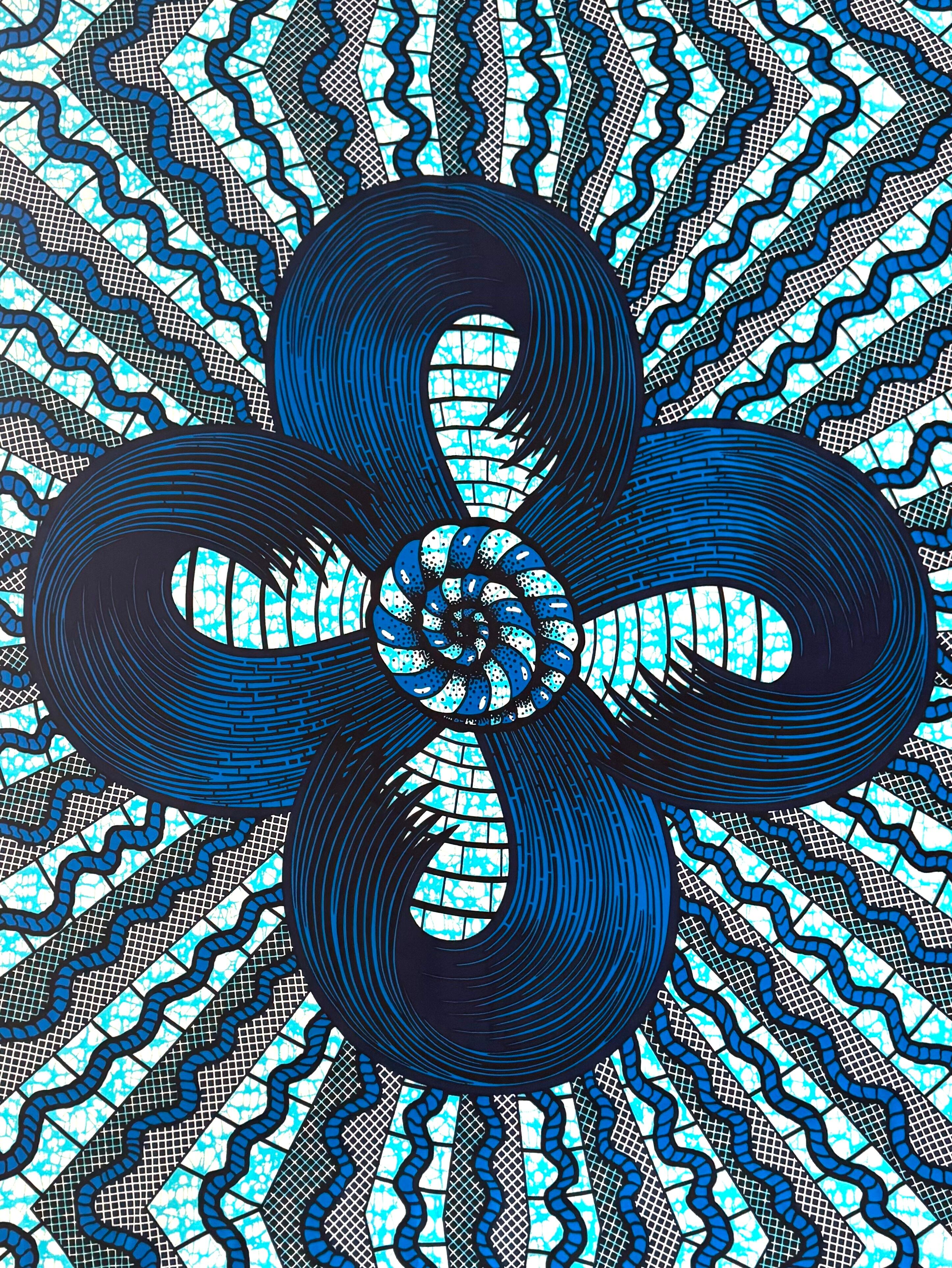【直輸入】アフリカ布|波紋・幾何学(ブルー/水色)|ABC Veritable Wax|2ヤード|AF-abc-BF