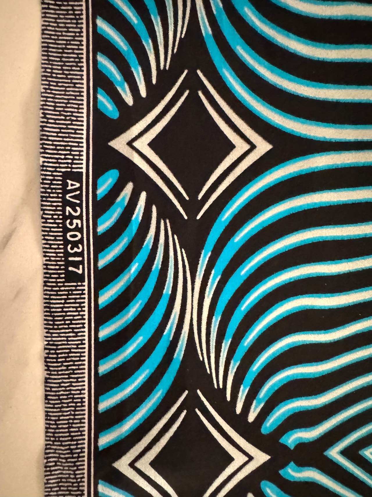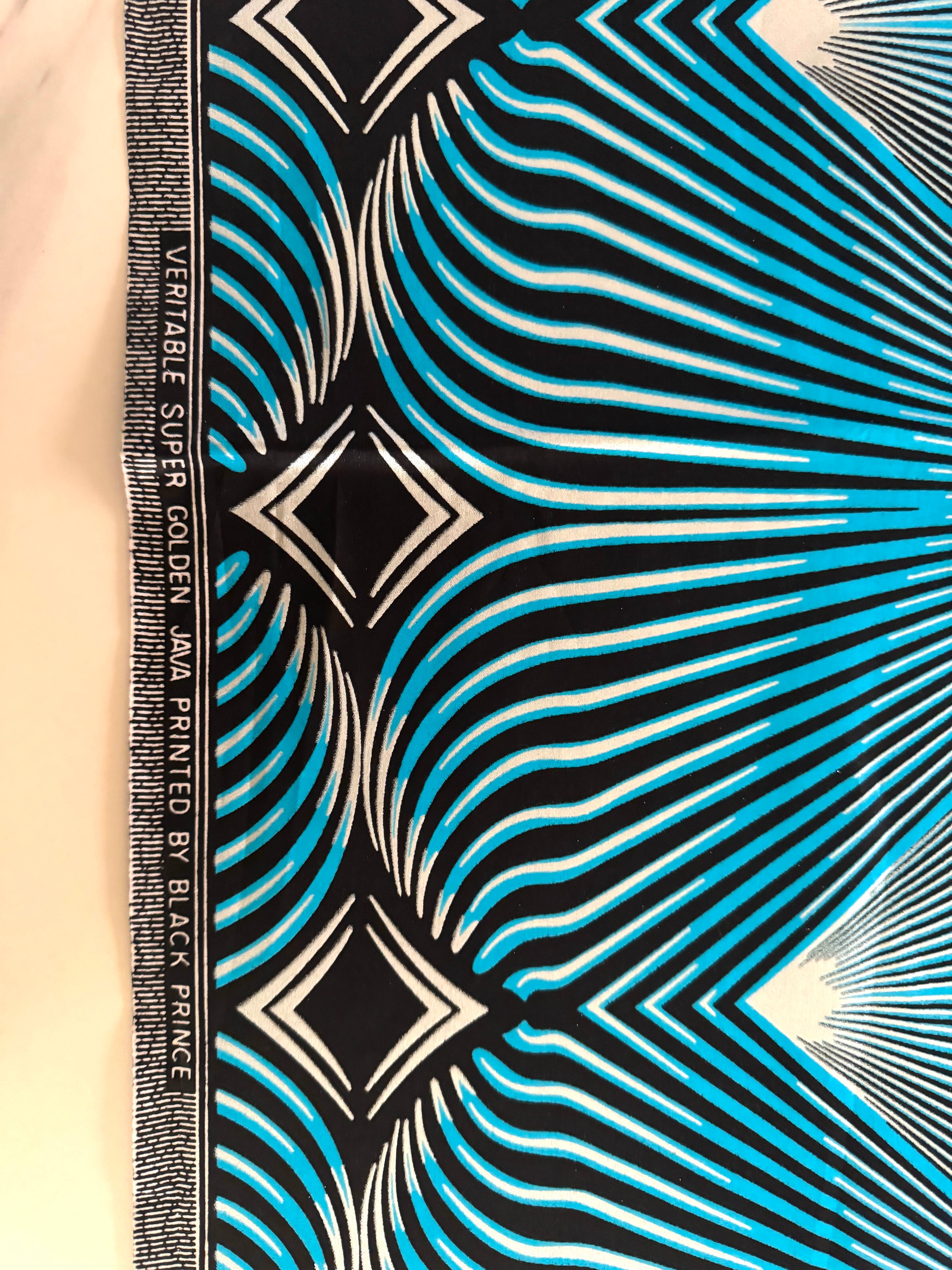 【直輸入】アフリカ布|流線型モダン(ターコイズ/ブラック)|BLACK PRINCE Golden Java|2ヤード|AF-BKPRC-B