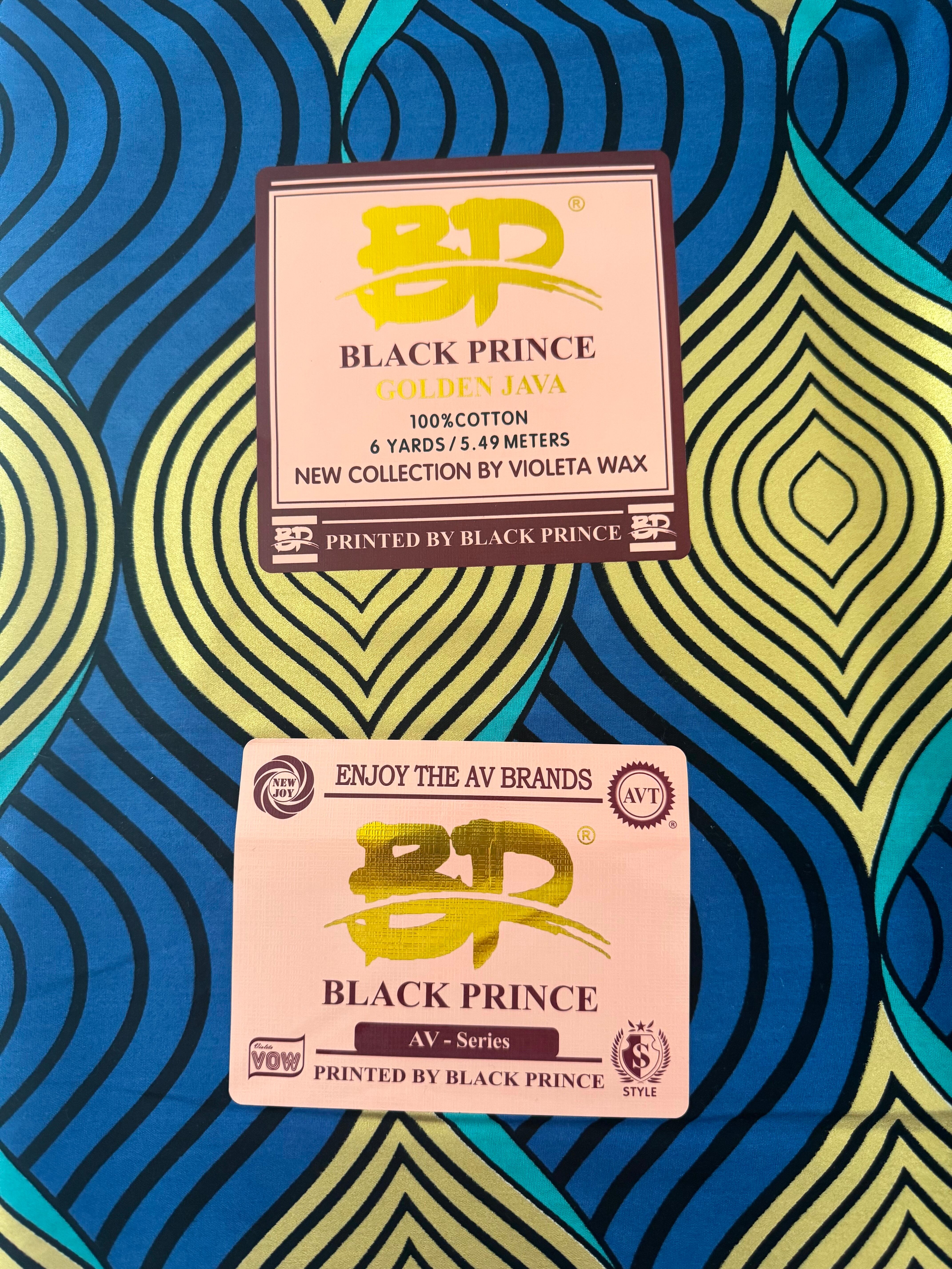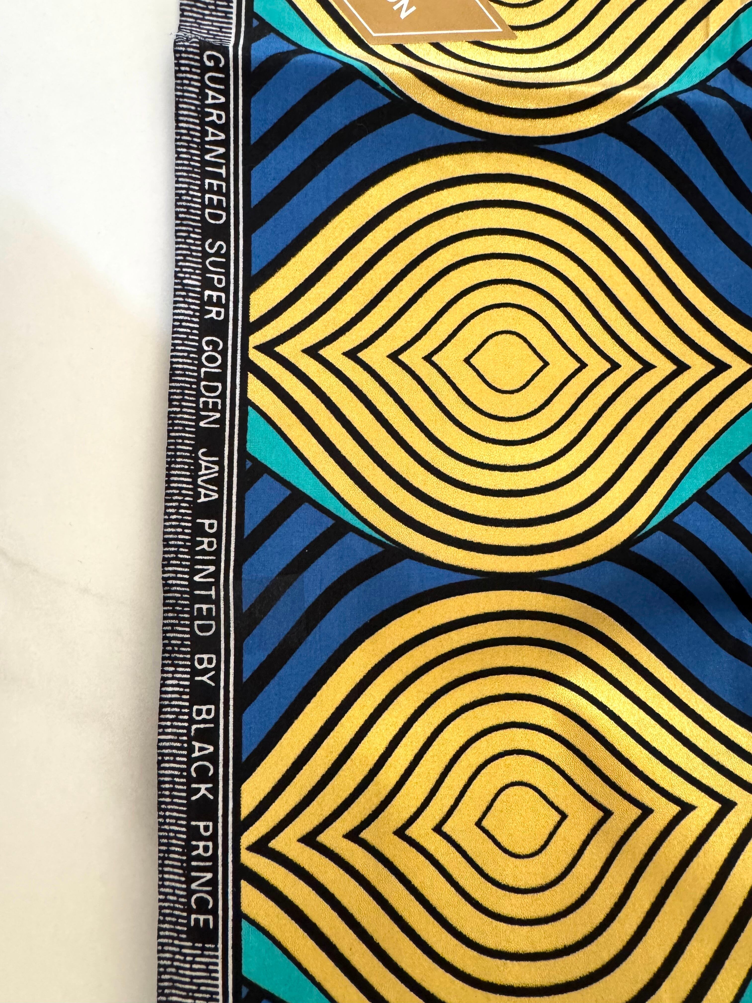 【直輸入】アフリカ布|幾何学シェル(イエロー/ブルー)|BLACK PRINCE Golden Java|1ヤード|AF-BKPRC-BY