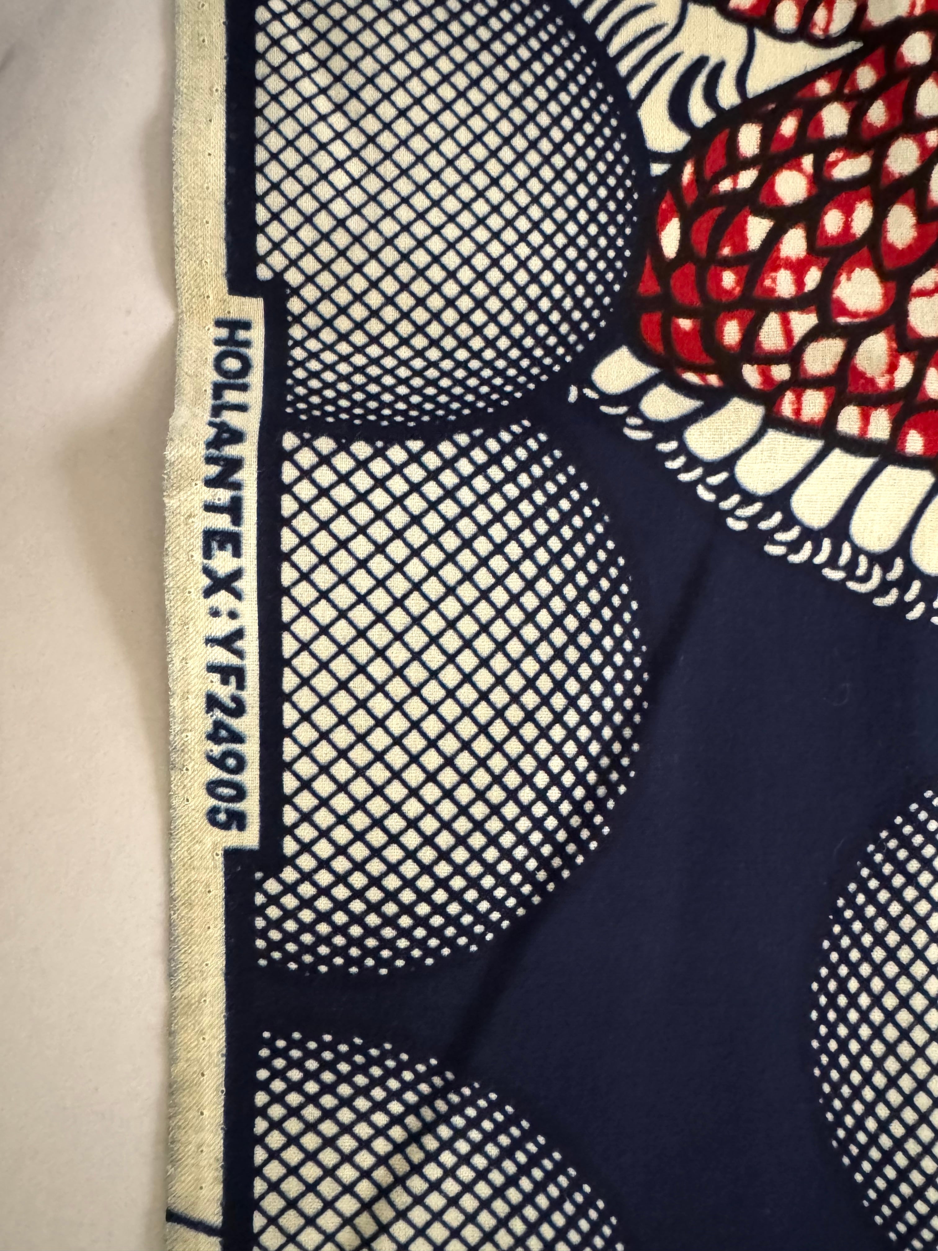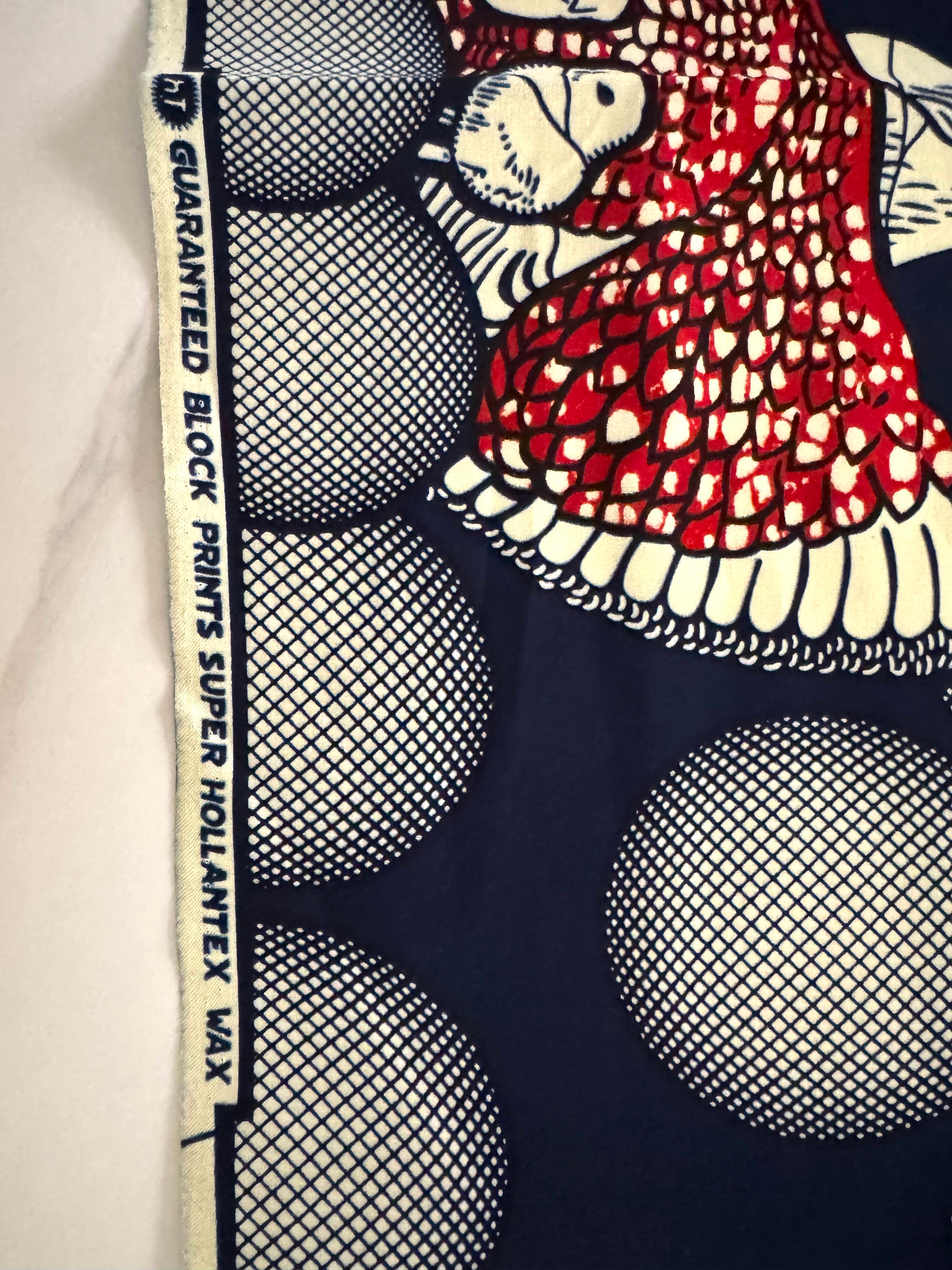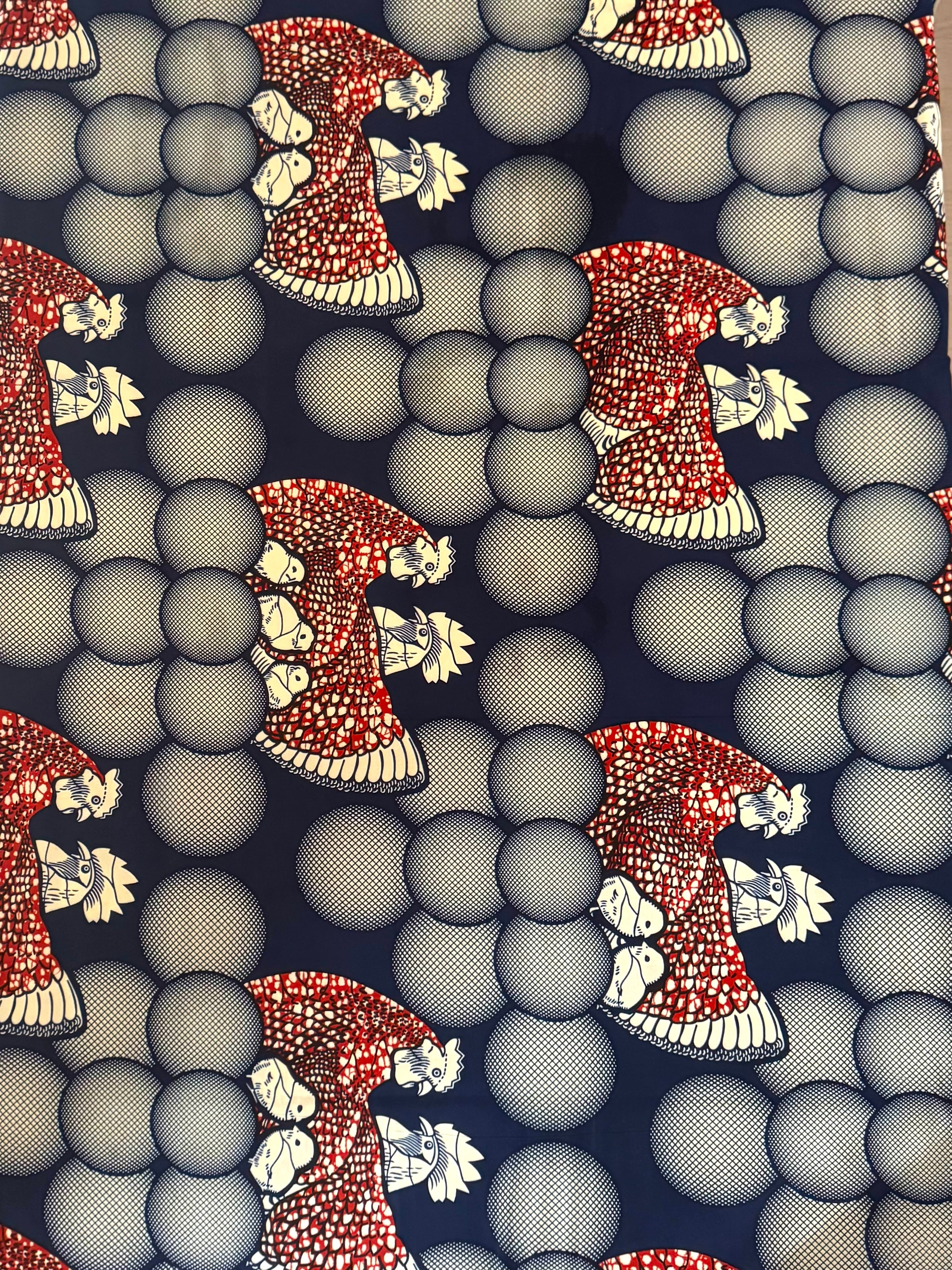 【直輸入】アフリカ布|にわとり&バブル(ネイビー/レッド)|HOLLANTEX|1ヤード|AF-HOLLANTEX
